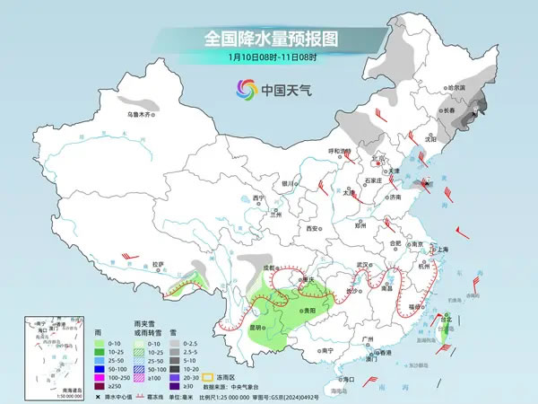 中國(guó)天氣網(wǎng)訊 眼下,一股較強(qiáng)冷空氣正在影響我國(guó)北方地區(qū),給多地帶來大風(fēng)降溫、雨雪及沙塵天氣。今明兩天(1月10日至11日),隨著冷空氣東移南下,華北、黃淮等地最高氣溫將降至近期低點(diǎn)。不過,冷空氣來去匆匆,下周初各地最高氣溫又會(huì)迅速回升。此輪冷空氣帶來的雨雪天氣主要集中在北方,今天東北部分地區(qū)仍會(huì)有降雪現(xiàn)身,山東半島等地將現(xiàn)冷流雪,提醒公眾注意做好防范措施。