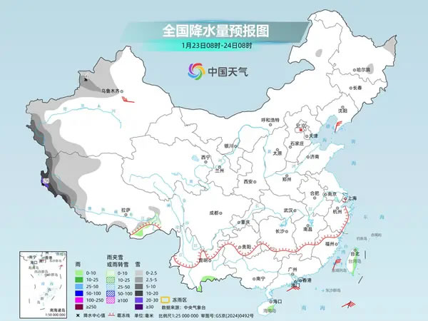 中央氣象臺(tái)預(yù)計(jì),今天,新疆南疆西部山區(qū)、西藏西部等地部分地區(qū)有小到中雪,其中,新疆南疆西部山區(qū)部分地區(qū)有大到暴雪。湖南南部、廣西西北部等地局地有凍雨。云南東南部、廣西中東部、福建中部、臺(tái)灣島中東部等地部分地區(qū)有小雨,其中,臺(tái)灣島東部局地有中雨。