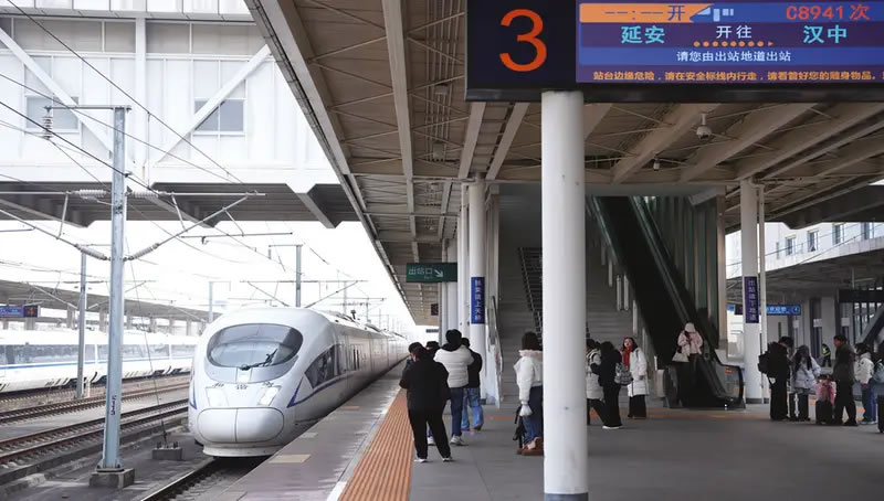 一月二十六日,漢中—延安兩地開(kāi)通城際高鐵,標(biāo)志著陜南陜北首次實(shí)現(xiàn)城際高鐵直達(dá)。