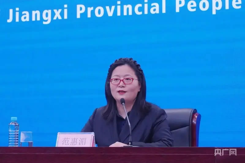 范惠湄介紹江西商旅文體健融合的相關(guān)情況(央廣網(wǎng)見習(xí)記者 葉昱汝 攝)