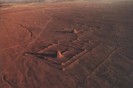 西夏陵陵邑遺址是一個平面布局呈長方形的建筑群體,座北朝南,方向南偏東20度。