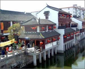 歷史上七寶鎮(zhèn)是個典型的江南水鄉(xiāng)和重要的農(nóng)村集鎮(zhèn)。鎮(zhèn)中橫亙著自西向東的 蒲匯塘,為太湖水系之一,鎮(zhèn)東有南北向的橫瀝港,北接吳淞江,南接黃浦江。蒲匯塘和橫瀝港相交于鎮(zhèn)中心,境內(nèi)另有支河十余條,當(dāng)年溝通市街的石橋就有27座之多。七寶的鎮(zhèn)市,集中于蒲匯塘南北兩條大街。當(dāng)時的七寶鎮(zhèn)上,遍布酒館、茶樓、布店、糧行,人氣很旺盛,一直維持著繁榮昌盛的局面。