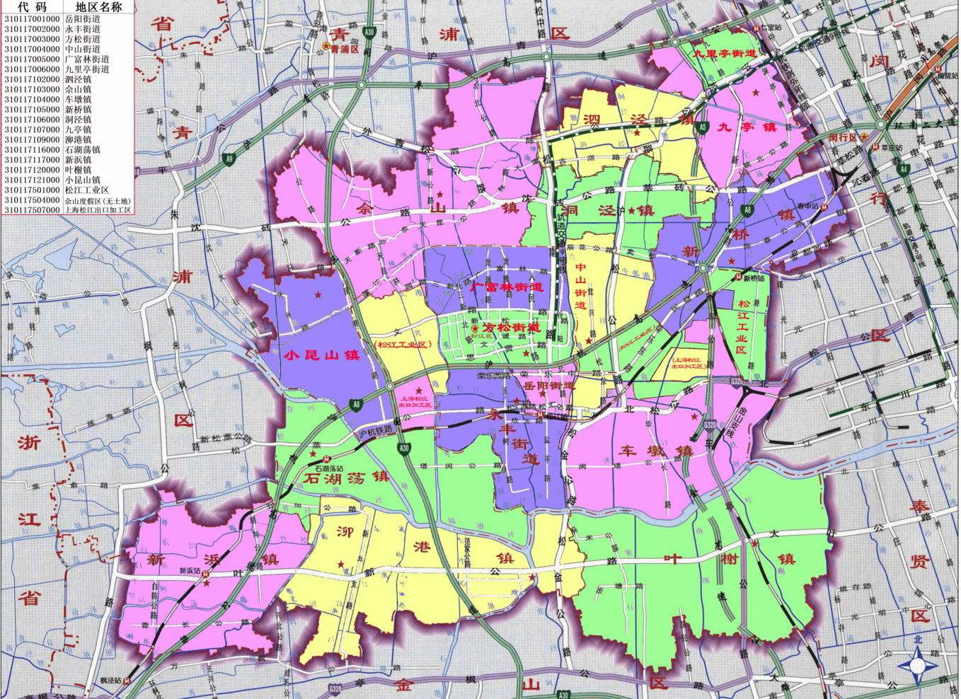 街道:岳陽(yáng)街道、永豐街道、方松街道、中山街道、廣富林街道、九里亭街道