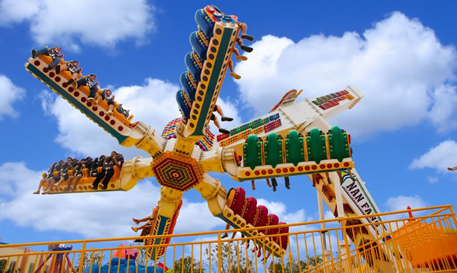 在優(yōu)美、輕快的旋律中,碩大的轉(zhuǎn)盤和轉(zhuǎn)臺錯向旋轉(zhuǎn)、搖擺,隨著轉(zhuǎn)盤的搖擺,塔身徐徐上升。此時,穩(wěn)坐飛椅的游客在離心力的作用下,上下飛旋,時而像在藍(lán)天翱翔,時而像在海上沖浪,能感受到騰云駕霧的快感。想體驗(yàn)兒時蕩秋千的感覺嗎,想體驗(yàn)在空中展翅飛翔的暢快嗎,那就來到高空飛翔盡情的放聲尖叫吧……