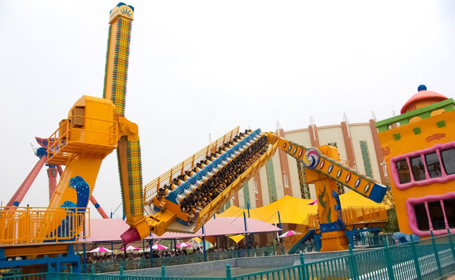 百米時速,巨幅轉(zhuǎn)動,順勢自轉(zhuǎn),似秋千蕩漾,如飛碟騰空,大擺錘讓您在極速俯仰間體驗(yàn)到目眩神迷、驚心動魄的奇妙感覺。