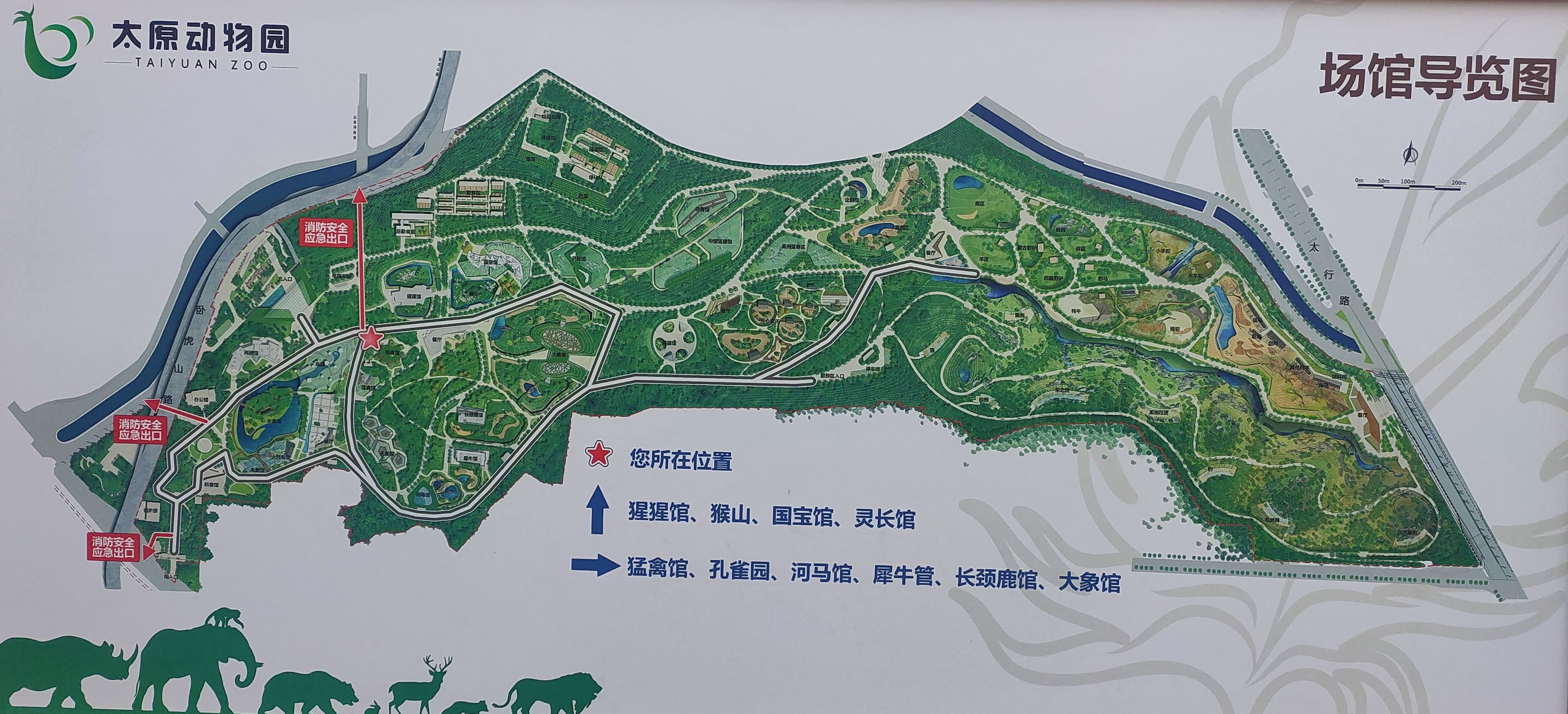 太原動物園現(xiàn)占地面積為42公頃,飼養(yǎng)展出動物 150余種,近2000只,場館建筑面積達兩萬多平方米,每年接待國內外游客 200多萬人次。 在展覽內容上,有進口動物長頸鹿、白犀、斑馬、長角羚、美洲獅、狒狒等,國產動物大熊貓、亞洲象、扭角羚、東北虎、金錢豹、蒙古野驢、白唇鹿、麋鹿、褐馬雞、綠孔雀等。 太原動物園,北部為猛獸室;中部為鳥館、水禽;南部為猴舍、熊貓、海豹館,褐馬雞,珍珠雞、羚羊、梅花鹿也雜居其間。