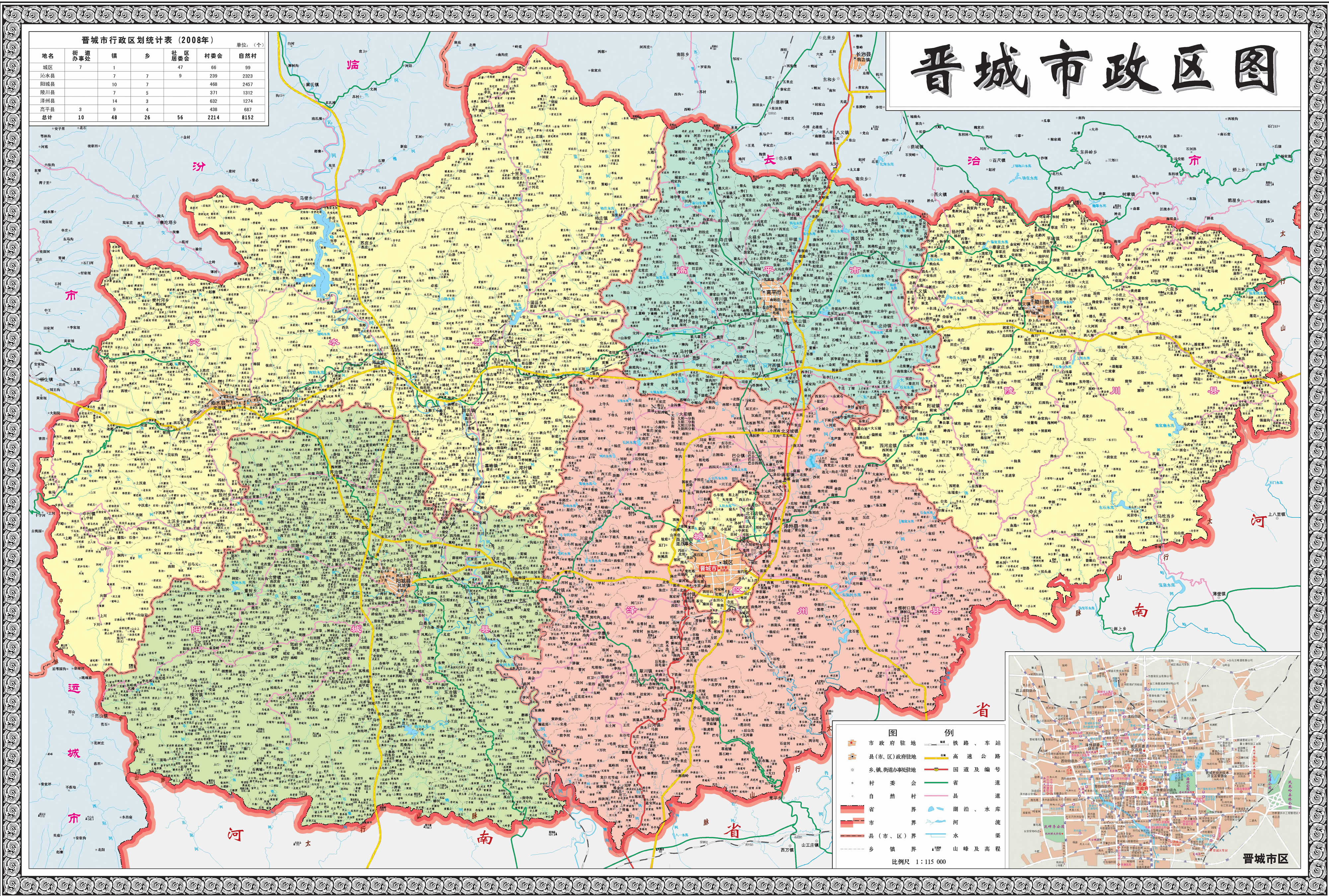 晉城市轄1個(gè)市轄區(qū)、4個(gè)縣,代管1個(gè)縣級(jí)市:
