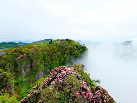 龍頭山景區(qū),位于陜川交界處米倉山主梁,陜西省漢中市南鄭區(qū)小南海鎮(zhèn)境內(nèi),其峰如刀削,崖似斧劈,奇?zhèn)ザ鴯槑V。每當云繞霧鎖時,峰顛忽隱忽現(xiàn),如巨龍翻騰,故名龍頭山。