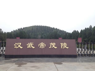 茂陵位于陜西省咸陽市興平市東北,東西為橫亙百里的“五陵原”。西距興平市12千米,東距咸陽市15千米。其北面遠依九嵕山,南面遙屏終南山。茂陵是漢武帝劉徹的陵寢,是漢代帝王陵墓中規(guī)模最大、修造時間最長、陪葬品最豐富的一座,被稱為“中國的金字塔”。茂陵于建元二年(前139年)至后元二年(前087年)間建成,歷時53年。陪葬墓有李夫人、衛(wèi)青、霍去病、霍光、金日磾?shù)热说哪乖帷?/p>