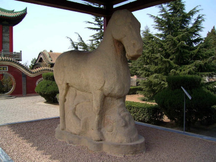 茂陵的群雕獸像、人獸相博的藝術(shù)造型,是漢武帝留在茂陵的十分珍貴的重大文化遺產(chǎn),空前啟后的“國之瑰寶”,是兩千多年前漢文化遺產(chǎn),是中國大型雕刻的鼻祖,是中國迄今發(fā)現(xiàn)時代最早、體積最大、保存最完整、最具有藝術(shù)價值的大型石刻群,在十四件造像巨雕作品中有十二件被國家文物局鑒定為“國寶”。中國美術(shù)家協(xié)會主席劉開渠,著名作家賈平凹以及前輩文史大師郭沫若等,都曾對其有“嘆為觀止”的贊賞。特別值得指出的是,這批巨雕中的“馬踏匈奴”、“躍馬”、“起馬”,最受歷代學者和游人的推崇,并認為這些“馬”的作品,可能出自漢武帝的授意。漢武帝癡愛寶馬,天下聞名。在中國歷史上,為能得到寶馬、良駒而出詩作的皇帝,漢武帝是第一人。