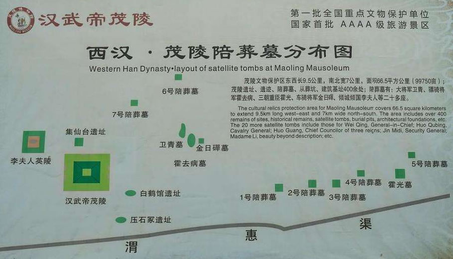 茂陵陪葬墓和其他漢陵的陪葬墓的奇異之處在于都有“象征”的說法和意義,例如衛(wèi)青墓、霍去病墓、李夫人墓等。
