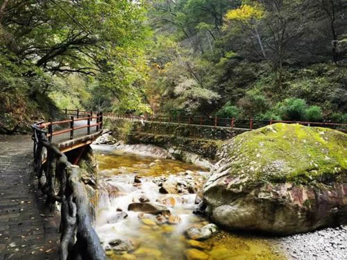 峪內(nèi)太平森林公園植物資源豐富、種類繁多、有古老的落葉松原始純林、紅樺純林、紫荊花,春夏秋冬,山色各異。
