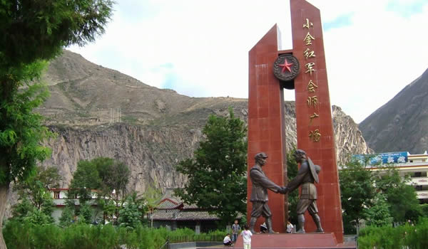 小金縣在中國革命史上具有光輝的一頁。1935年,中國工農(nóng)紅軍一方面軍在毛澤東、朱德、周恩來等老一輩無產(chǎn)階級革命家的帶領(lǐng)下,餐風露宿,歷盡艱辛,翻越了長征途中的第一座大雪山—夾金山,與紅四方面軍在該縣達維鄉(xiāng)勝利會師;在美興鎮(zhèn)天主教堂召開了團以上的干部參加的“同樂會”;在兩河口(今兩河鄉(xiāng))召開了具有重大歷史意義的中共中央政治局擴大會議。勤勞勇敢的小金人民節(jié)衣縮食支援紅軍,一千多名優(yōu)秀兒女參加了紅軍,為長征和中國革命勝利作出了積極貢獻。今年5月,由國務(wù)院核定批準,國家文化部公布了全國第六批重點文物保護單位和第一批非物質(zhì)文化遺產(chǎn)目錄。小金縣紅一、四方面軍會師遺址(達維會師橋、紅軍“懋功同樂會”遺址——天主教堂)和“兩河口政治局會議”會址榜上有名。