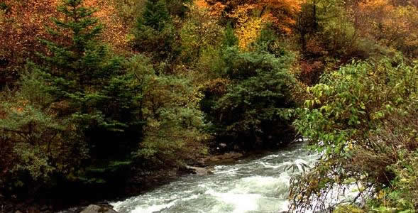 奶子溝:在藏語中是美麗富饒、幸福安寧之意。奶子溝八十里彩林風(fēng)情谷因身處深谷獨(dú)享清幽雅靜的奶子溝而得名,又以美甲天下的彩林世界而聞名。這里植被豐茂,陽光燦爛,氧氣充足,是個(gè)天然的大“氧吧”。奶子溝彩林洋洋灑灑長(zhǎng)達(dá)八十里,蔚為壯觀。樹種主要由樺樹、松樹、柏樹、楓樹和各種喬木組成,還有不同色彩的針葉林、闊葉林、次生林、灌木叢點(diǎn)綴其間,密密麻麻地覆蓋了一坡又一坡。在純凈的藍(lán)天底下,紫紅、粉紅、橘紅、金紅、深黃、草綠、黃綠、棕紅、褐色的樹木形成了“萬類霜天競(jìng)自由”之勢(shì)。進(jìn)入彩林世界你會(huì)感覺進(jìn)了油彩的世界,任你語言學(xué)家、色彩學(xué)家在它面前都會(huì)感到詞匯的匱乏,色彩的蒼白。