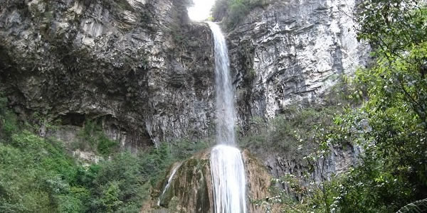 滴 滴水巖,位于固軍鄉(xiāng)火石梁村東南。此地有一小溪為兩山所夾,越往上游山勢(shì)越高,坡度越陡。最終于小溪盡頭處兩山合為絕壁,其頂部成“V”字相交。相交處有一股清泉摔落至下方一堅(jiān)立雞蛋狀的巨石,發(fā)出巨大的聲響。泉水再分為幾綹沿平滑如鏡的石壁滑落至下方深潭!遠(yuǎn)遠(yuǎn)看去,爬滿(mǎn)暗綠青苔的石壁上像是掛著無(wú)數(shù)條白色的絲帶和珠簾!雖景致與沙清河各有千秋,甚至略勝一籌。但因交通較為閉塞,所以知者不多,但來(lái)此觀光過(guò)的游客無(wú)不伸出大拇指一個(gè)勁兒地叫好!