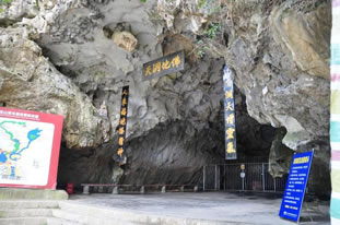 佛爺洞位于李白故里——四川省綿陽(yáng)江油市城西北十四公里處,是神密的川西北最大的喀斯特溶洞。此處上接匡山(又名戴天山);下連李白讀書(shū)臺(tái);東臨觀霧、團(tuán)嶺;西依瑩華、乾元,它是通往九寨風(fēng)景區(qū)的必經(jīng)之地。洞四周山環(huán)水繞,古木蒼翠,風(fēng)光奇絕。民國(guó)二十三年,人們?cè)谕ㄌ烨搴舆叞l(fā)現(xiàn)了一蹲三米多高的石刻如來(lái)佛像,故此洞名曰佛爺洞。