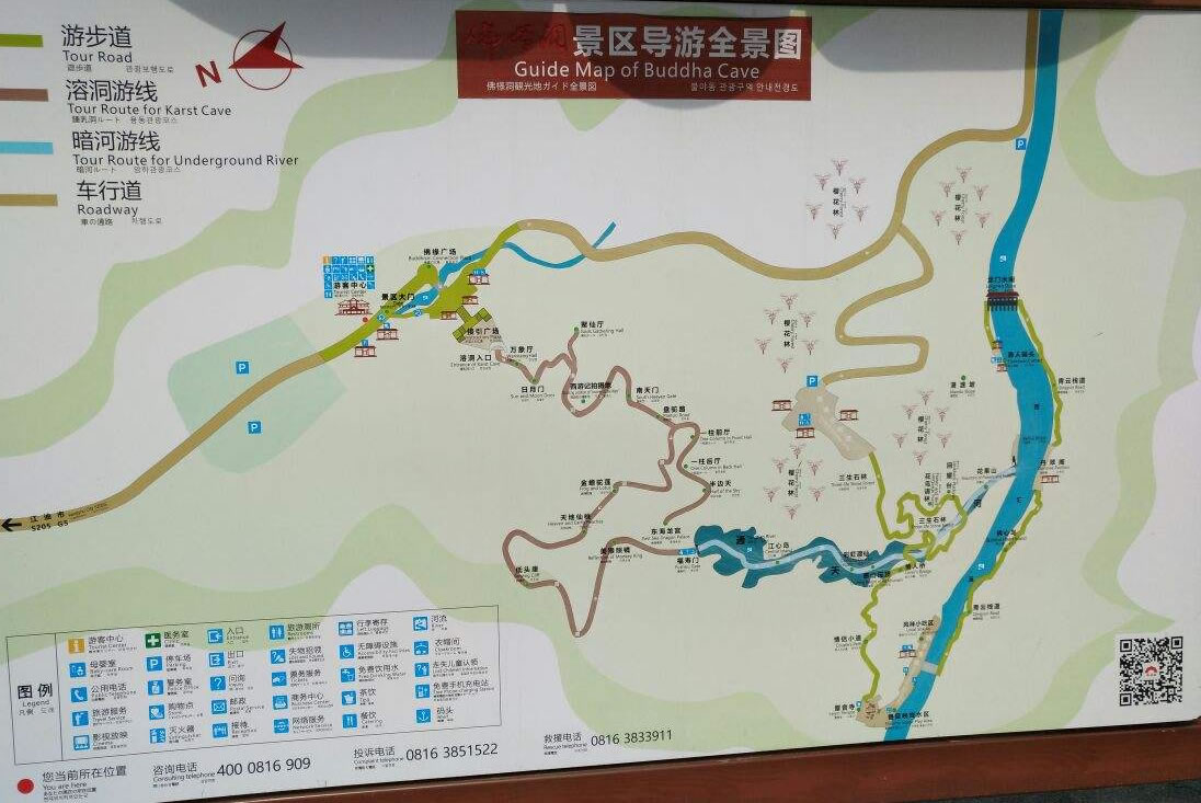景區(qū)以大型溶洞、地河景觀、清溪深峽、草地森林、石山石海為景觀主調(diào)。佛爺洞之美在于山、水之間,在于一路上總會(huì)遇見(jiàn)不同風(fēng)景。景區(qū)采用單行通道,不走回頭路的游覽方式。