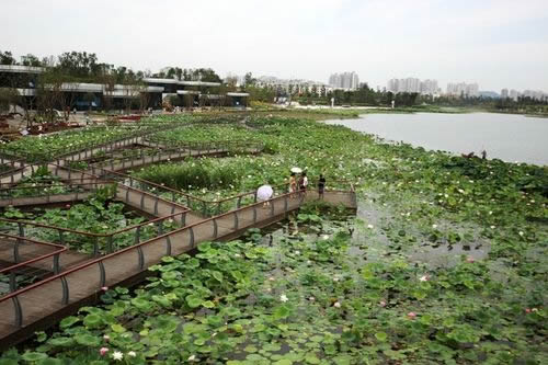 圣蓮島世界荷花博覽園成為遂寧的又一張自然名片,與河?xùn)|的濕地公園、城北濕地公園及席吳二洲濕地公園等景區(qū)一起,打造著這個城市的文化符號,構(gòu)成遂寧完美的景區(qū)化城市。