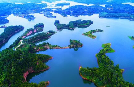 位于景區(qū)腹心地帶,大型島嶼之一。該島形貌奇特,彎多水深,岸線曲折,與西部丘陵一橋相連。島上有花果山、風披山、阿彌倫佛山、小連山、草坪山、小蓬萊山等,山山相連,島島相望,環(huán)境幽靜,樹木蔥郁,被省林業(yè)廳命名為“四川省級森林公園”。