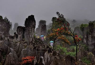 華鎣山的石柱雄壯秀拔,石生樹、樹纏石等自然景觀隨處可見,旅游區(qū)內(nèi)的植被更是枝葉繁茂、郁郁蔥蔥。經(jīng)初步估算旅游區(qū)內(nèi)的植被種類竟達(dá)304種之多。珍稀的香果樹、穗花杉等多種國家一、二級(jí)的保護(hù)植物似珍珠般的散落于旅游區(qū)。山下以松樹、杉樹為主;山上以藤蔓、稀有樹種為主;茂密的白夾竹、茨竹、方竹、灌木、喬木漫山遍野,掩映于奇特的石林之中,植被覆蓋率達(dá)95%以上的旅游區(qū)格外耀眼壯觀。而個(gè)別的罕見的植物植物學(xué)家們至今難以對(duì)它命名,從而更增加華鎣山神秘的色彩。