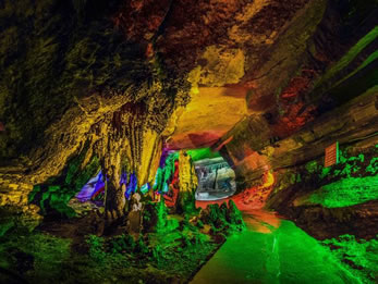 樓房洞全長約2000余米,可供游覽面積8萬平方米以上,洞中三層洞道,六個獨成體系的景區(qū),1000余米陰河流水,3000平方米以上的四季不盈不虛的湖水,數(shù)個神奇的巨型鐘乳石瀑布, 少有的洞內(nèi)溫泉組成立體多層次游覽圖。