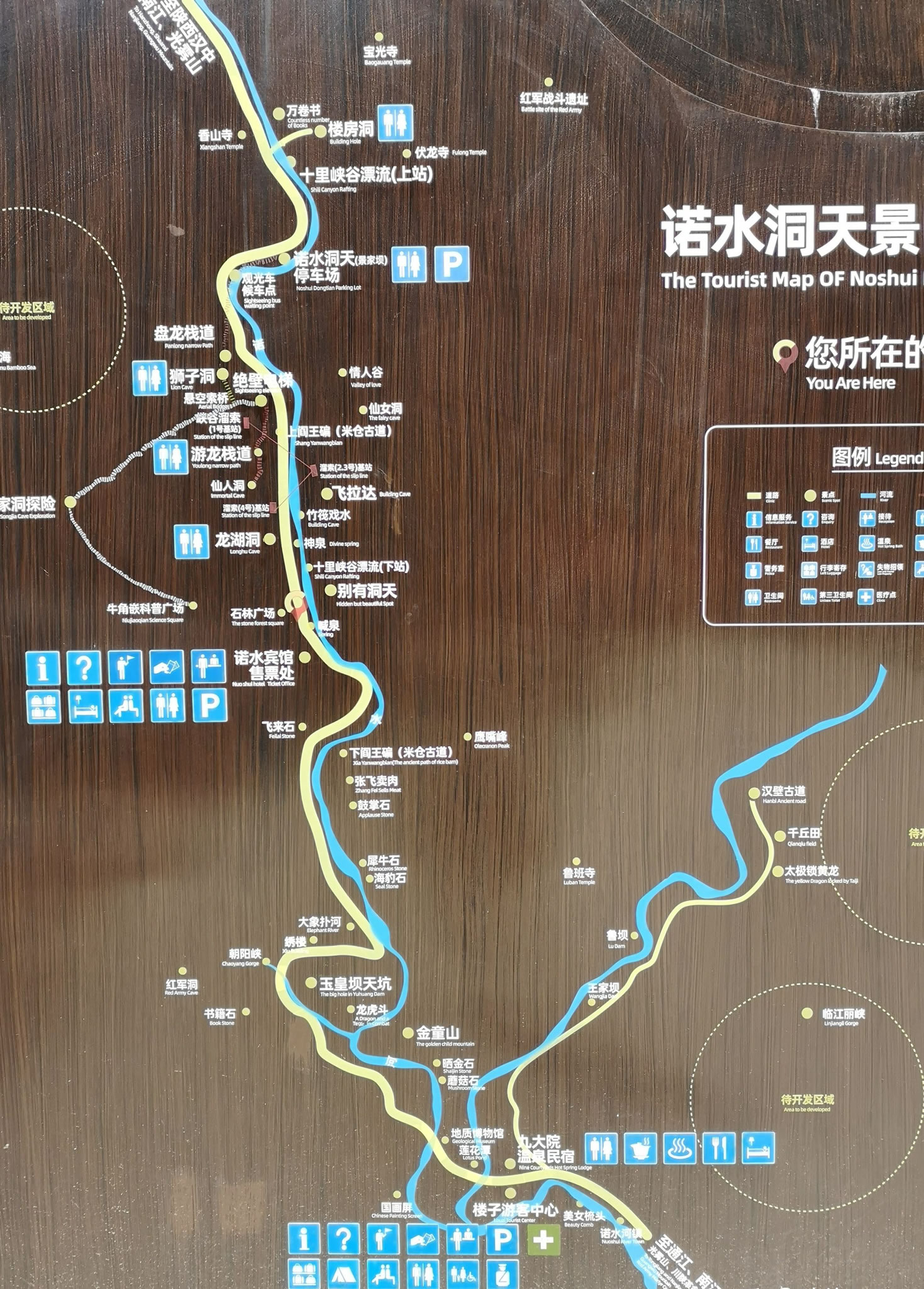 諾水河風(fēng)景名勝區(qū)內(nèi)金童山至中峰洞為腹心地帶,沿河兩岸奇峰突兀,峭壁如削,頗有桂林景致、三峽險趣,其間地下溶洞密布,洞洞相連,洞中有洞,已初步探明景區(qū)溶洞128個。