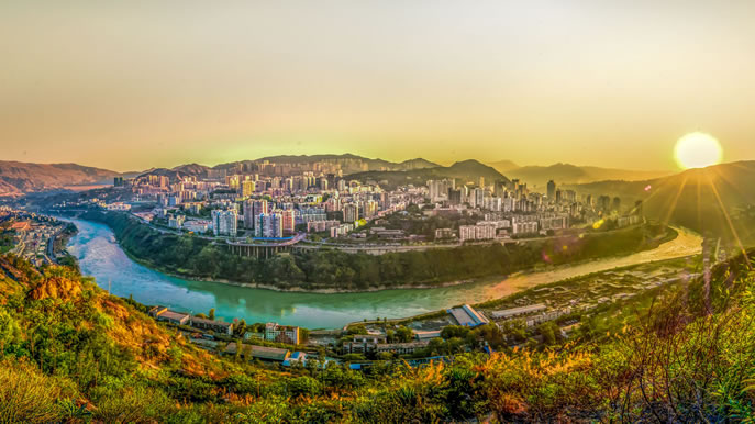 攀枝花市,位于中國(guó)西南川滇交界部,金沙江與雅礱江交匯于此。東、北面與四川省涼山彝族自治州的會(huì)理、德昌、鹽源3縣接壤,西、南面與云南省的寧蒗、華坪、永仁3縣交界,總面積7440平方千米;北距成都749千米,南接昆明351千米,是四川省通往華南、東南亞沿邊、沿?诎兜淖罱c(diǎn)。