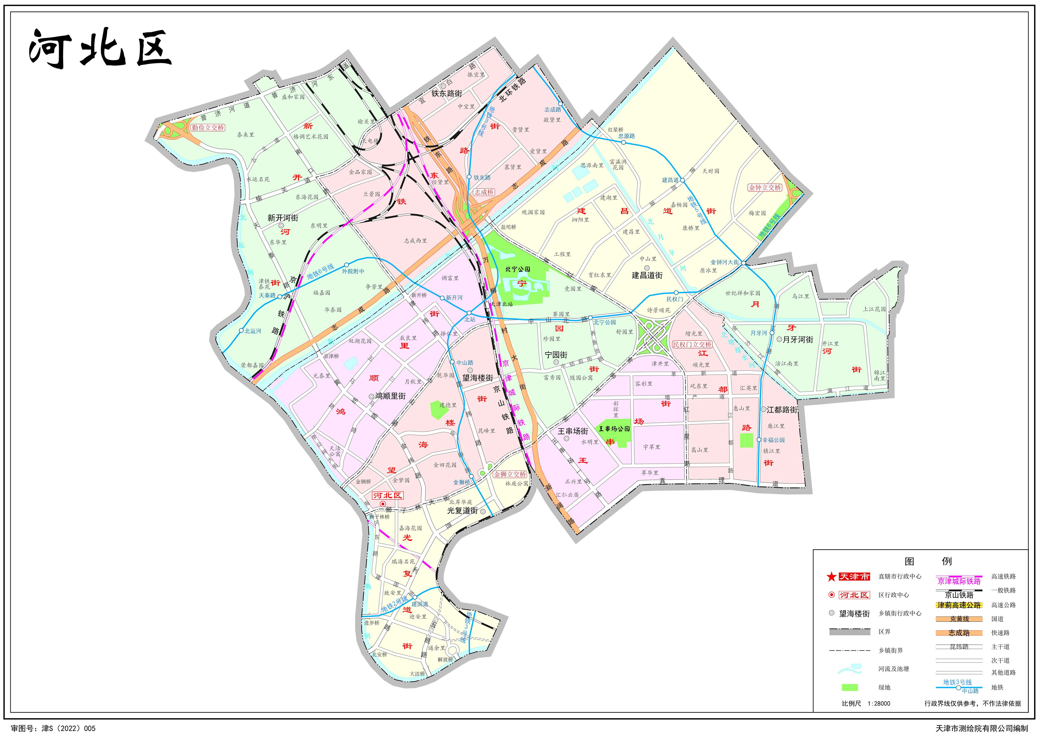 河北區(qū),東部與東麗區(qū)接壤,西部以海河、北運河為界,與和平區(qū)、南開區(qū)、紅橋區(qū)隔河相望。南部與河東區(qū)毗連,北部與北辰區(qū)相鄰,總面積29.62平方千米。