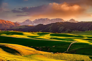 江布拉克是哈薩克語,意為圣水之源。她集結(jié)了天山之靈氣,并融入諸多美麗的傳說。在這里,遠(yuǎn)山近水相映,林海雪峰交融,綠波花海如潮,一派圣潔的自然風(fēng)光。美麗的江布拉克,以其秀美迷人,如詩如夢的花海子,明靜清幽的黑澇壩,世界之最的天山怪坡,以及阡陌縱橫的田園風(fēng)光吸引著眾多游人的目光。
