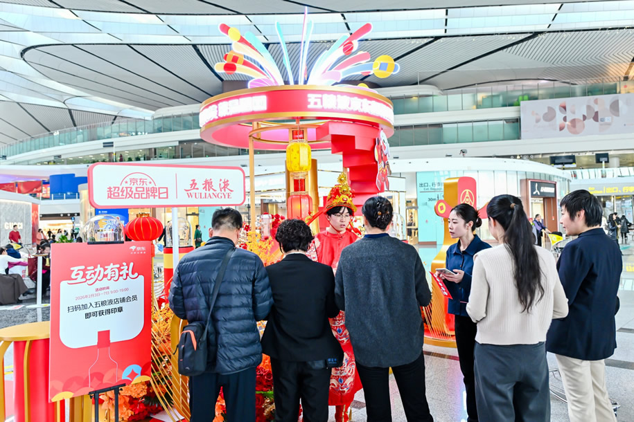京東旅行攜手五糧液在此次年貨節(jié)中圍繞“機(jī)場(chǎng)快閃—主題航班—行李傳送帶驚喜事件”構(gòu)建全鏈路航空?qǐng)鼍盃I(yíng)銷體系,通過場(chǎng)景沉浸與體驗(yàn)互動(dòng)相結(jié)合的方式,創(chuàng)新打造“空中禮遇”高端消費(fèi)場(chǎng)景。這一營(yíng)銷策略精準(zhǔn)契合春節(jié)出行期間高品質(zhì)用戶的禮贈(zèng)需求,在航空?qǐng)鼍斑@類高凈值人群聚集場(chǎng)景中實(shí)現(xiàn)精準(zhǔn)觸達(dá)。通過文化展示、互動(dòng)與禮贈(zèng)驚喜的多維滲透,五糧液X京東超級(jí)品牌日不僅強(qiáng)化了其作為春節(jié)高端禮贈(zèng)首選品牌的認(rèn)知,更成功將“飛行途中·禮載心意”提升為春節(jié)消費(fèi)的新風(fēng)尚,進(jìn)一步鞏固了在高端年貨市場(chǎng)中的心智占位與品牌勢(shì)能。