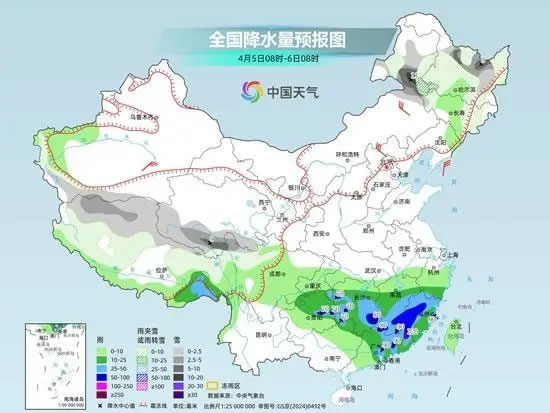 中央氣象臺預(yù)計,今天,內(nèi)蒙古東部、黑龍江中東部、吉林中部等地部分地區(qū)有小到中雪或雨夾雪,其中,黑龍江東南部和中部、吉林中東部等地部分地區(qū)有大到暴雪或雨夾雪。江南東部和南部、華南北部和東部以及吉林中部、遼寧中東部等地部分地區(qū)有中到大雨,其中,湖南南部、江西南部、福建中南部、廣東中北部等地部分地區(qū)有暴雨,局地大暴雨。