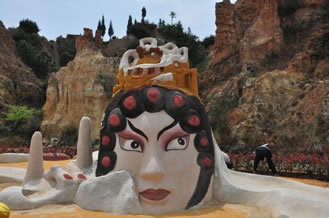 沙內(nèi)滲泉,甘露長漣,滋沙養(yǎng)人。風(fēng)沙不揚,水沙不染,冥冥費解。依山臨湖,磅礴氣概,天地奉獻。這寰于一絕的奇景,吸向性,潛在力,輻射度,都具有特殊價值,憑借這一世界獨有的資源優(yōu)勢,借助沙雕藝術(shù)魅力,經(jīng)過精心策劃,認(rèn)真組織,于2001年至今成功舉辦了五屆主題分別為“千年夢幻”、“走進名著”、“五洲風(fēng)采”、“音樂神采”、“爨史風(fēng)情”的全球首創(chuàng)、世界唯一的國際彩色沙雕節(jié)暨沙雕大賽。
