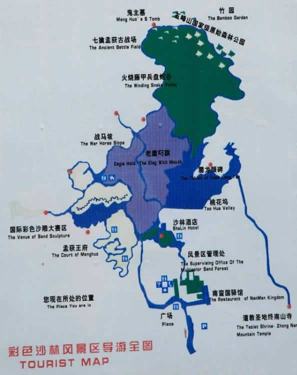 除此之外,沙林還有很多集科學(xué)和歷史為一體的人文景觀;主要有34個洞穴構(gòu)成的“洞穴度假村”、“三十六計洞穴浮雕”、“洞穴舞廳”、“沙地跑馬場”、“古棧道”、“峰火臺”、“古城堡”、“《爨史》浮雕”、“爨府玄門”、“文房四寶(石筆、石墨、石硯、石紙)”、“碑林”、“化石門”、“南蠻乾門”、“彝家寨門”、“孟獲寨門”、“孟獲王府”、“沙雕賽區(qū)”、“戰(zhàn)馬坡”、“盤蛇谷”、“蠻王古墓”、“竹園”“千年古藤”、“黑泉”、“挑斷口子”等。