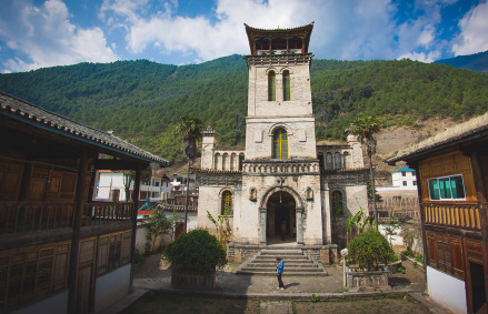茨中教堂,位于云南省迪慶藏族自治州德欽縣茨中村。始建于清同治六年(1867年),原在自菇村,法傳教士主持興建。清光緒三十一年(1905年),焚毀茨姑教堂。清宣統(tǒng)元年(1909年)修建茨中教堂,歷時(shí)12年竣工,建成后即成為天主教云南鐸區(qū)主教禮堂。