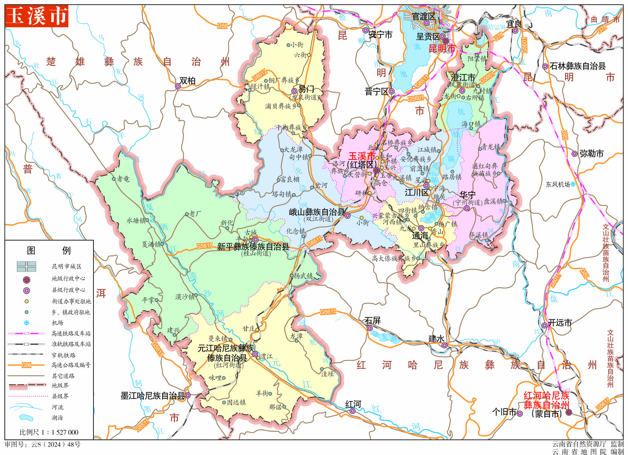 玉溪市轄2個區(qū)、6個縣、1個縣級市: