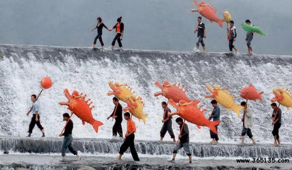 魚燈:是青田最傳統(tǒng)、最有代表性和地方特色的燈舞種類,也是浙江省魚燈類代表性的傳統(tǒng)民間舞蹈。青田魚燈歷史悠久,道具制作精美逼真,伴奏音樂鏗鏘有力,舞蹈動作粗獷奔放,表演風格熱烈樸素。青田魚燈表演時以“紅珠”領隊,每人手舉一盞魚燈,頓時鑼鼓喧天,燈火輝煌,歡聲雷動,場面宏偉壯觀。目前,青田已組建了20多支不同流派、不同年齡、不同形式和不同風格的魚燈表演隊伍。青田魚燈曾參加首都建國50周年慶典演出、第五屆中國國際民間藝術節(jié)、第七屆中國藝術節(jié)和第十三屆“群星獎”等國內國際民間藝術交流,取得了優(yōu)異的成績,被譽為“天下第一魚”。