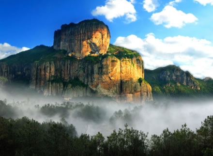 南雁蕩山,簡(jiǎn)稱南雁,位于平陽(yáng)縣西部,距溫州市區(qū)87千米。主峰明王峰,海拔1080米,山頂有泥塘沼澤,秋科時(shí)節(jié)有大雁在此棲息,且與北雁蕩山遙望相對(duì),故名南雁蕩。南雁蕩山總面積97.68平方千米,群巒疊翠,飛瀑溪潭,共有67峰、28巖、24洞、13潭、8潭、9石。南雁蕩的開發(fā)較早于北雁蕩,五代時(shí)高僧愿齊就率三百名門徒在此開發(fā)。